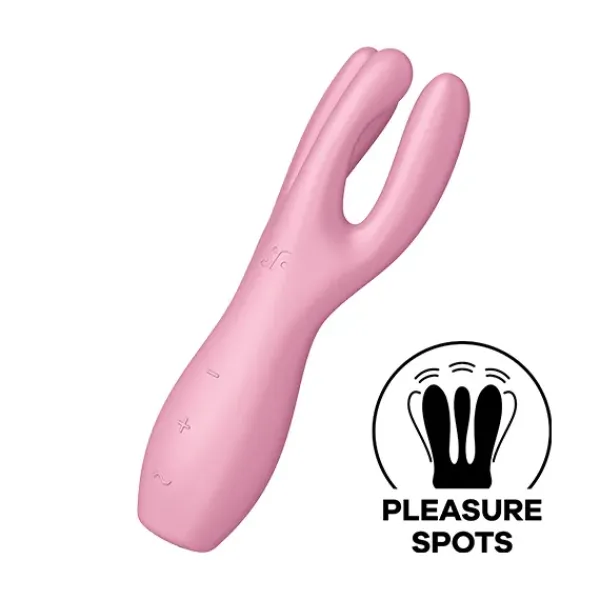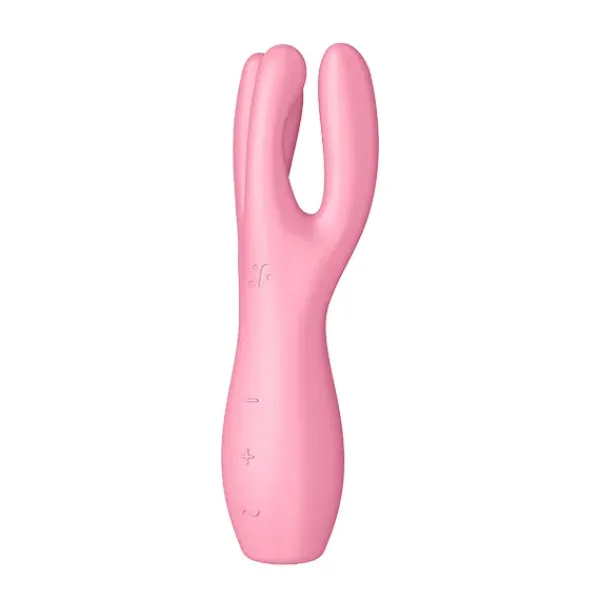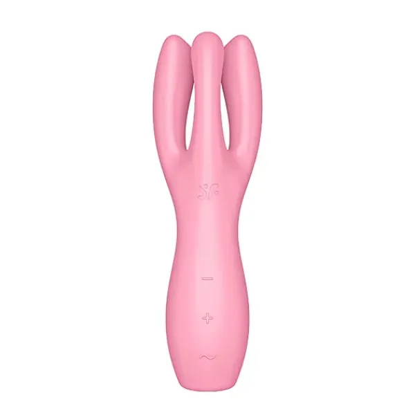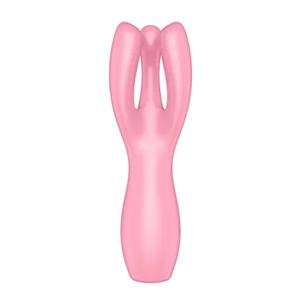 El vibrador de colocación Threesome 3 proporciona una estimulación sensual del clítoris y los labios vaginales en una amplia zona: con sus 3 brazos redondeados, cada uno de los cuales alberga un potente motor, tiene una forma ergonómica. Los dos brazos exteriores miman los labios mientras que el brazo central descansa centrado sobre el clítoris y se puede empujar hacia abajo para intensificar la estimulación.