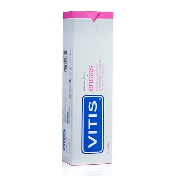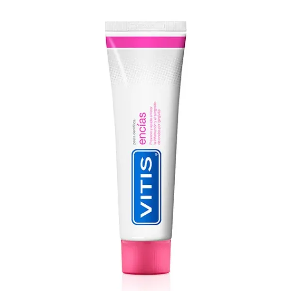 VITIS® encías es una pasta dentífrica de uso diario que previene y ayuda en el tratamiento de los problemas de encías como la inflamación, la rojez o el sangrado. El uso continuado previene la aparición de enfermedades de las encías, reduce el sangrado y mantiene unas encías sanas y en buen estado.