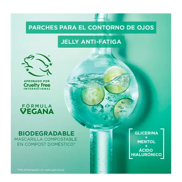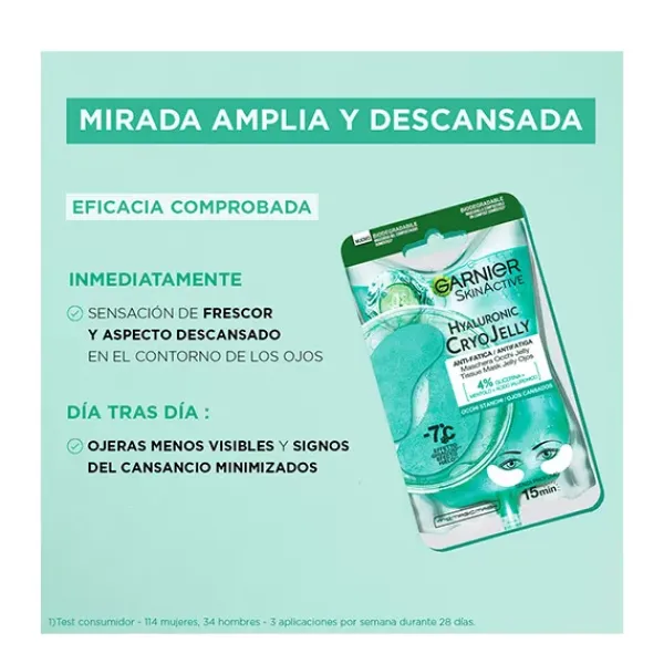 Garnier Tissue Mask Hyaluronic Cryo Jelly Antifatiga para contorno de ojos.