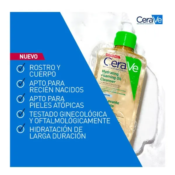 CeraVe Aceite Limpiador Hidratante es un producto de cuidado que limpia suavemente, repone e hidrata las pieles normales a muy secas y con tendencia atópica, al tiempo que restaura la barrera cutánea.