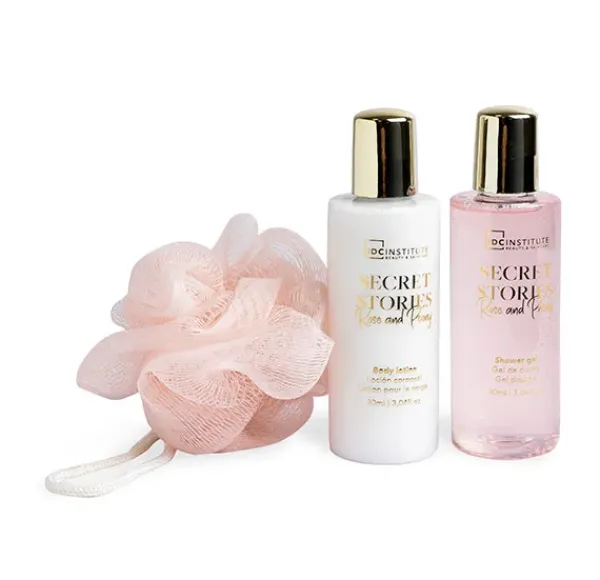 Nuestro set Secret Stories, presentado en un encantador envase en forma de zapato de tacón, contiene gel de duchay de loción corporal y una esponja. Sumérgete en la experiencia floral con el cautivador aroma a rosas y peonías, que añade un toque de sofisticación a tu rutina de cuidado personal.