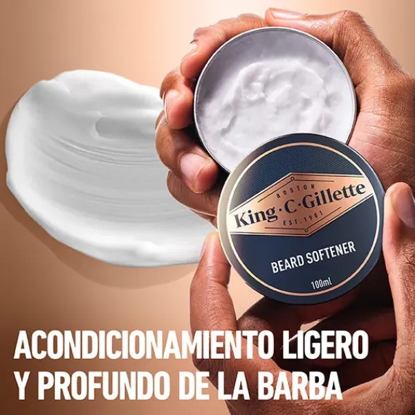 El champú (con agua de coco, aceite de argán y de aguacate) asegura una barba limpia y una piel fresca. El bálsamo (enriquecido con manteca de cacao y de karité y aceite de argán) asegura una barba suave y flexible. El pináculo de la innovación y la experiencia que abarca más de un siglo y la única línea con el nombre de nuestro padre fundador: King C. Gillette.