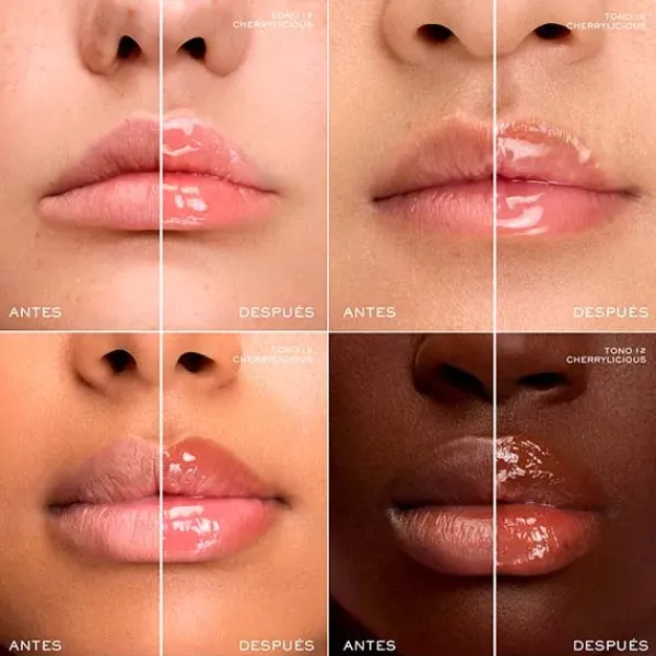 Su innovador aplicador Maxi Lip-Hugging se adapta a la forma de los labios, garantizando una aplicación uniforme y precisa en una sola pasada. Con una textura ligera y un efecto refrescante gracias al mentol, este gloss ofrece confort absoluto mientras potencia el volumen natural de los labios. Disponible en múltiples tonos, Juicytreat es el complemento perfecto para un look luminoso y jugoso.