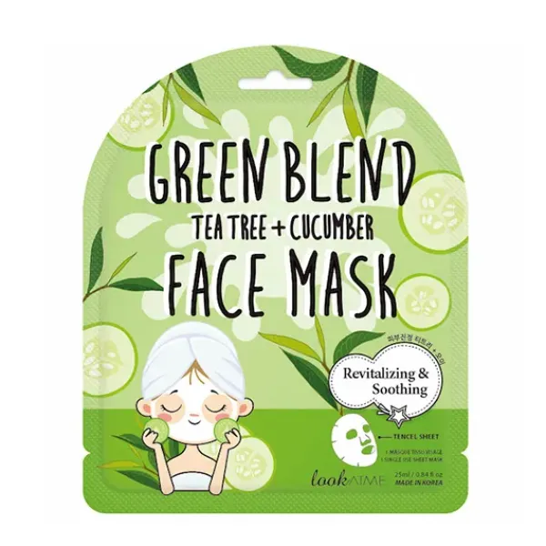 Mascarilla facial calmante y revitalizante con extracto de árbol de té y pepino.