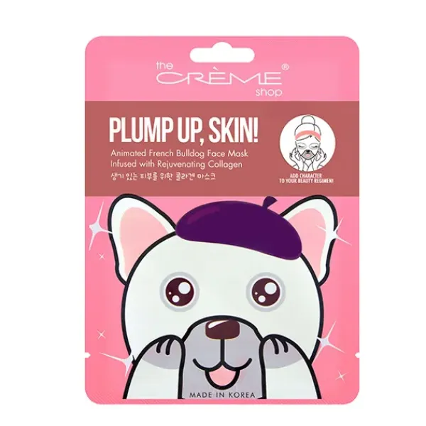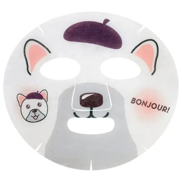 Mascarilla facial con divertido dibujo de bulldog francés que contiene colágeno y promueve la elasticidad de la piel y ayuda a dismilar las pequeñas arrugas y líneas de expresión.