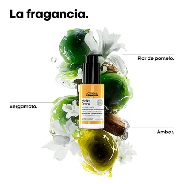 Descubre el Aceite concentrado Metal Detox de L’Oréal Professionnel, diseñado especialmente para cabellos dañados, coloreados y decolorados. Co-desarrollado con peluqueros expertos, este aceite concentrado combina una serie de beneficios excepcionales para mantener tu cabello en su mejor estado y prolongar la duración de tu color, balayage y decoloración. Evita la rotura y mantén tu color perfecto con la gama Metal Detox, que previene los daños de tu cabello y aporta un brillo duradero.