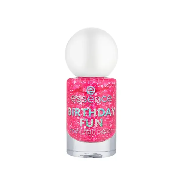 Gran diversión en un frasco pequeño: el mini esmalte de uñas essence. Su juguetón envase con tapón redondo contiene un esmalte de uñas con un ligero efecto de purpurina con matices rosados. Tanto si celebras tu día especial como si quieres sorprender a una amiga, con el práctico esmalte de uñas podrás hacer que cada día parezca una celebración.