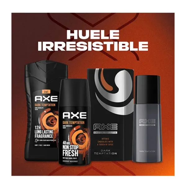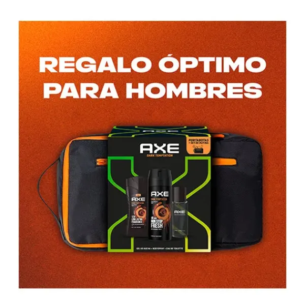 Axe Mochila de regalo para hombre Dark Temptation con desodorante en aerosol, eau de toilette y gel de ducha 150ml+50ml+250ml .