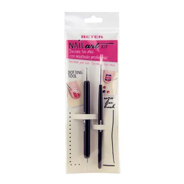 Contiene un pincel para poder crear líneas y dibujos y un puntero doble con doble cabezal con bolita pequeña y bolita media.