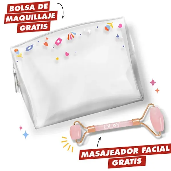 Como regalo especial, incorpora un face roller para disfrutar de masajes relajantes y un encantador neceser para guardar todos tus productos básicos para el cuidado de la piel.