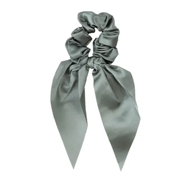 Estos scrunchie con lazo de 12cm de satén son ideales para lucir en moño, coleta o simplemente para retirar los mechones durante tu rutina facial. «