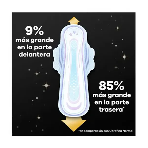 Con doble cobertura tanto en la parte frontal como en la trasera, donde más se necesita mientras duermes. Aun así, son tan finas como las compresas Ausonia Ultrafina de día.