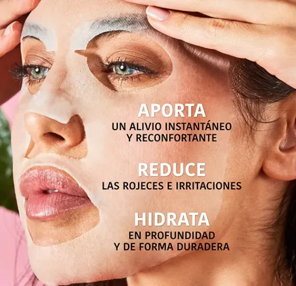 «La mascarilla Hidratante Calmante aporta un alivio y confort instantáneo a la piel, en especial aquellas más sensibles con rojeces e irritaciones. Además, hidrata de forma profunda y duradera a la vez que protege y fortalece la barrera cutánea.
