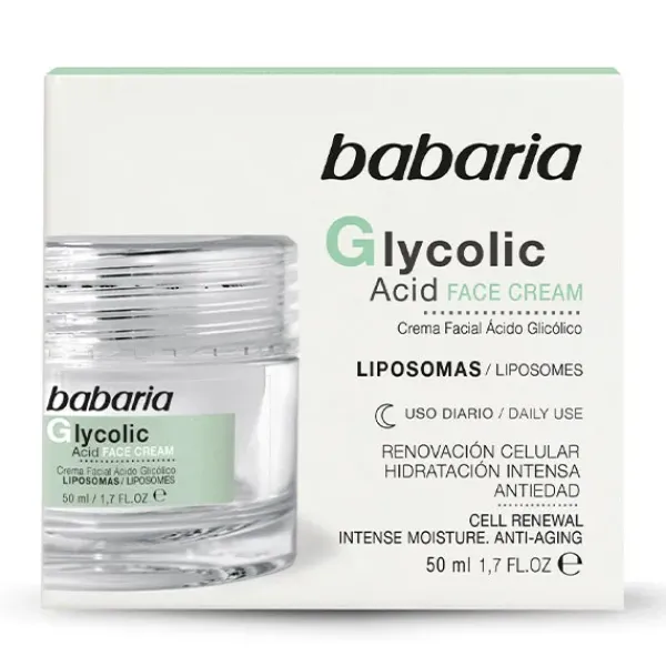 La crema facial Glycolic Acid de Babaria renueva y regenera la piel, con efecto antiedad.