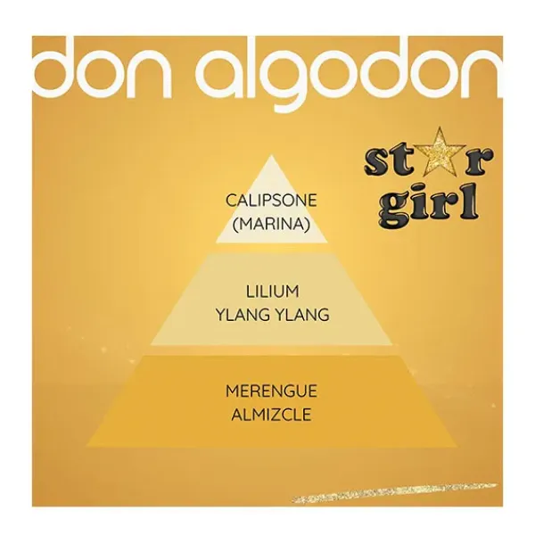 Brilla como una estrella con la Eau de Toilette Star Girl de Don Algodón. Una fragancia floral gourmand marina de 30 ml que te hará sentir única y deslumbrante en cada ocasión. Con notas de calipsone, lilium, ylang ylang, merengue y almizcle, es el perfume perfecto para mujeres radiantes que destacan por su fuerza interior.