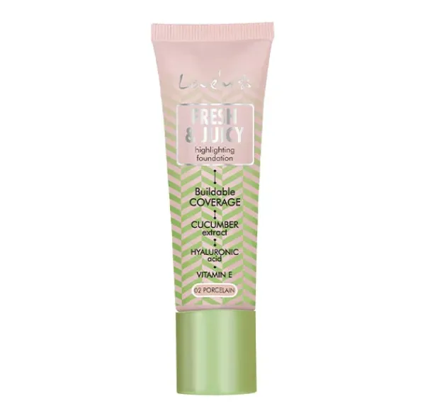 Base de maquillaje iluminadora con extracto de pepino fresco, de cobertura media y edificable.