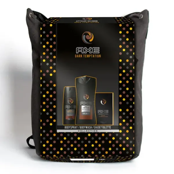 Axe Mochila de regalo para hombre Dark Temptation con desodorante en aerosol, eau de toilette y gel de ducha 150ml+50ml+250ml .