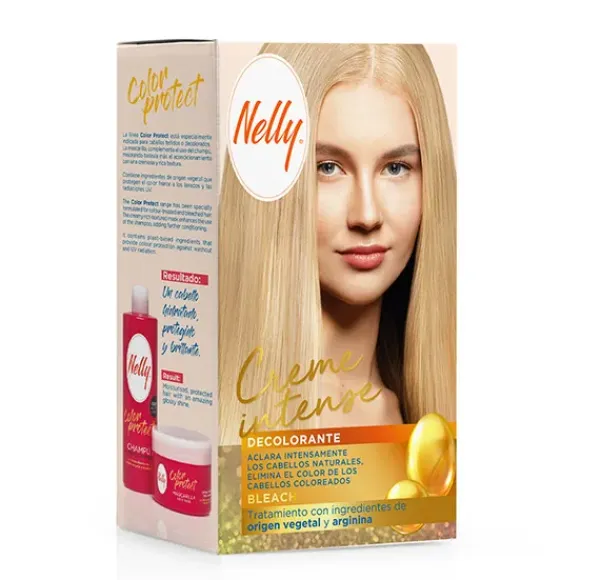 Nelly Decolorante aclara intensamente los cabellos naturales y elimina el color de los cabellos coloreados. Recrea el rubio más natural. Cuidado y suavidad que protege el cabello y luminosidad de tu color. Rápida acción decolorante, intensa acción aclarante. No volátil. Fácil de mezclar. Agradable perfume que se mantiene a lo largo del proceso.
