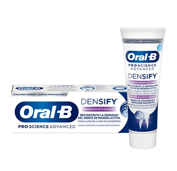 La pasta dentífrica Oral-B Pro-Science Densify aumenta la densidad del esmalte en cada cepillado para mantener tus dientes en buena condición.