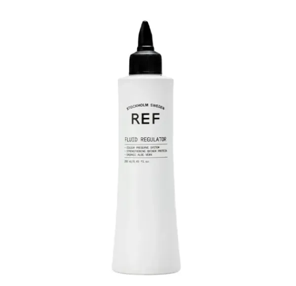 Mezcle la solución Curly Perm con el regulador de fluido. Elija la fórmula deseada de Curly Perm de REF según la textura y la porosidad del cabello del cliente.