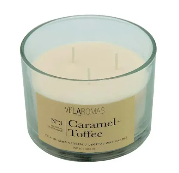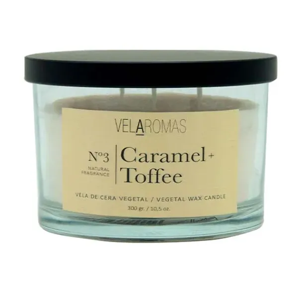 Vela 3 Mechas con tapa de cera vegetal con fragancia a CARAMEL TOFFE
