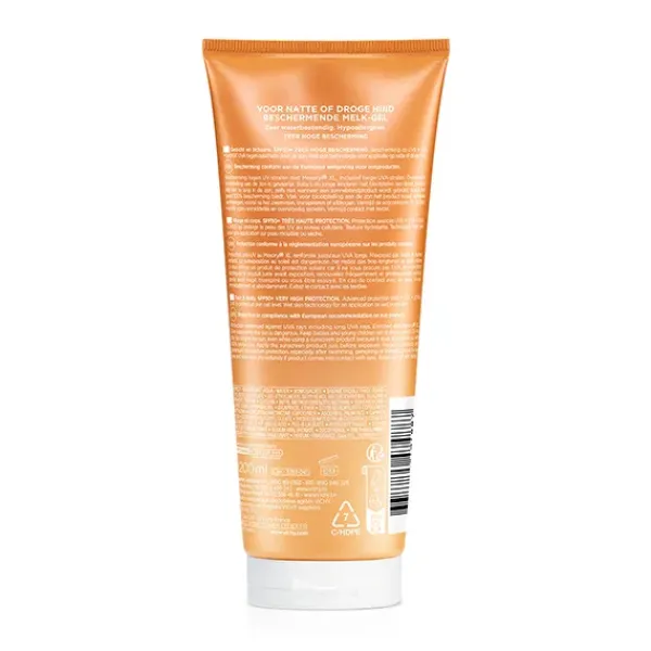 Este gel de leche ultra fundente le ofrece una buena protección antes y después del baño o el deporte gracias a su protección UV reforzada con Mexoryl XL.