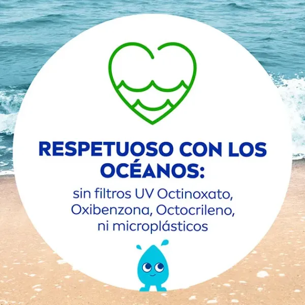 5. Respetuosa con los océanos: Sin los filtros UV Octinoxato, Oxybenzona, Octocrileno y libre de microplásticos.