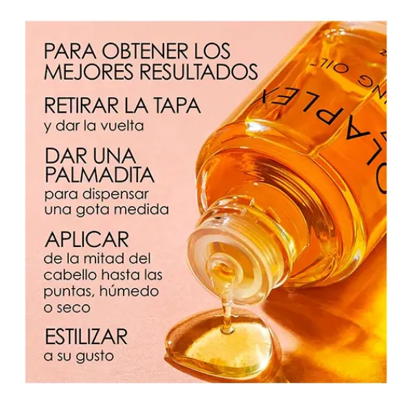 Este aceite para el cabello reparador y ligero, pero muy concentrado proporciona un 125 % más de brillo*, reduce la rotura en un 77 %, controla el encrespamiento hasta 72 horas, controla el cabello rebelde y añade suavidad sedosa a la vez que protege el cabello del calor (hasta 450 °F/232 °C).