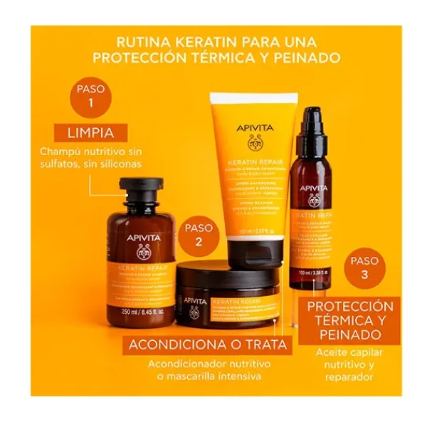 Puede aplicarse como tratamiento pre-champú para una nutrición intensa o antes del peinado para protección térmica y facilitar el peinado.