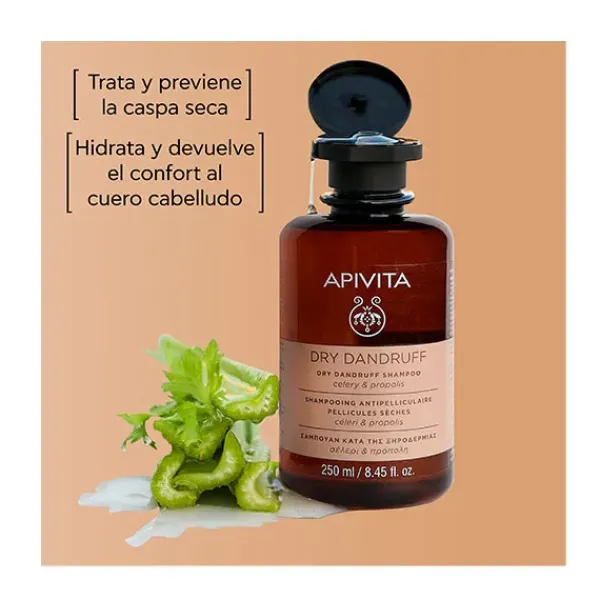 • Combate eficazmente la caspa seca y previene su reaparición gracias al extracto de semillas de apio.