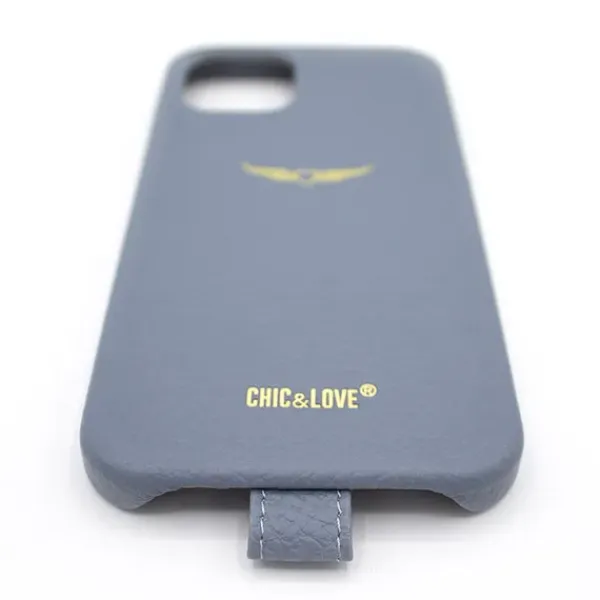 Funda para iPhone 12 Pro en tejido efecto piel con detalles dorados en color azul.