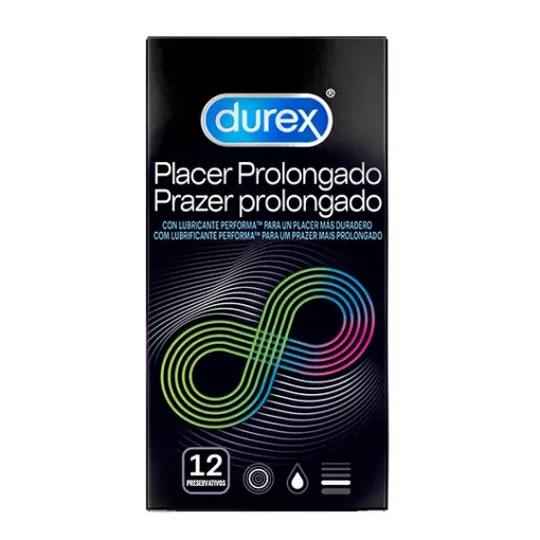 Durex Placer Prolongado son condones con lubricante Performa para un placer más duradero.