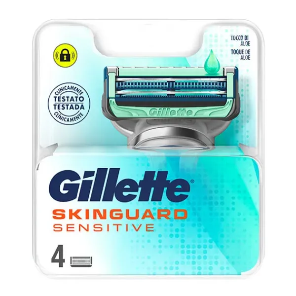 Las hojas de los recambios Gillette SkinGuard Sensitive para hombre son las primeras con una aleta protectora única entre las hojas que protege la piel durante el afeitado.
