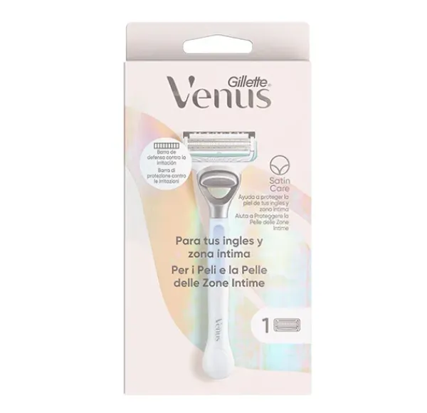 La maquinilla Venus para las ingles y zona íntima está diseñada para proteger la piel de la irritación tras la depilación.