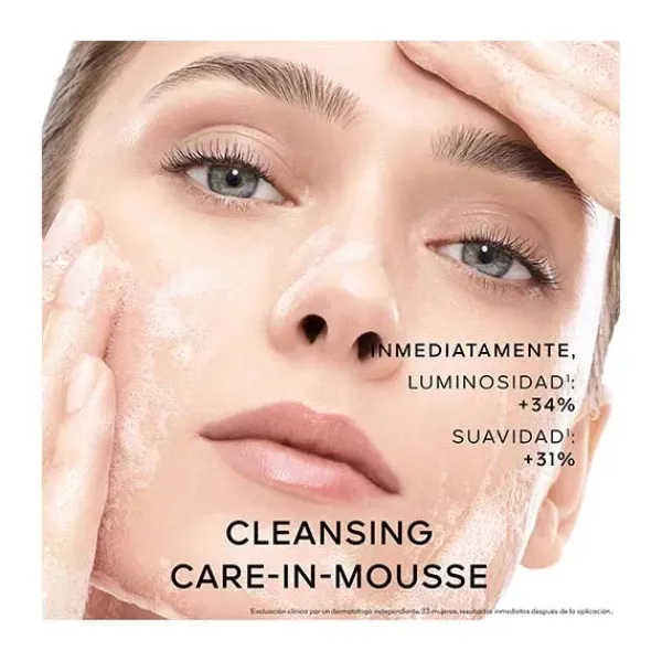 Cleansing Care-in-Mousse elimina las impurezas y los restos de maquillaje preservando la barrera cutánea. Con una combinación de mieles reparadoras y jalea real, está formulada con un 90 % de ingredientes de origen natural. Esta jalea, enriquecida con microperlas lipídicas que se funden al contacto con la piel, proporciona una sensación de confort, incluso cuando se expone al agua calcárea. La piel se muestra hidratada y más joven.