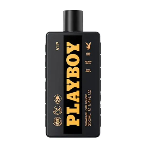 Este gel de ducha 3 en 1 diseñado para el cuerpo, el rostro y el cabello forma parte de la colección de fragancias VIP. Apta pra veganos. La formulación se presenta en una botella que contiene un 30% de plástico reciclado, excluye ta tapa y etiqueta.