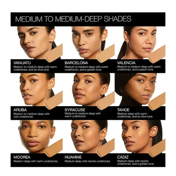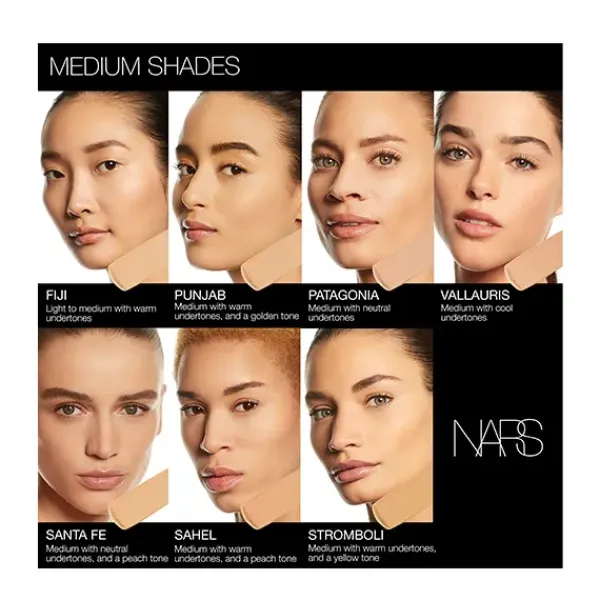 Cobertura total de aspecto natural. Enriquecida con el Complejo antioxidación exclusivo de NARS, que ayuda a prevenir el cambio de color, y el nuevo Complejo equilibrante Hydramatte que equilibra el exceso de grasa manteniendo la hidratación de la piel, creando un aspecto suave, mate, como una segunda piel.