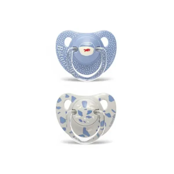 Pack de dos chupetes con tetina anatómica para bebés de +18 meses.