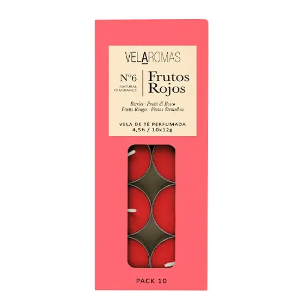 Pack de 10 minivelas con fragancia Frutos Rojos.