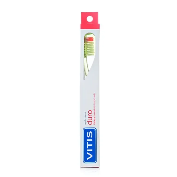 VITIS® duro es un cepillo de uso diario con un cabezal normal de forma diamantada que permite llegar a las zonas de difícil acceso de la cavidad bucal. Sus filamentos duros y con perfil ondulado, facilitan el acceso a acceden a los espacios interdentales y se adaptan a la forma de los dientes.
