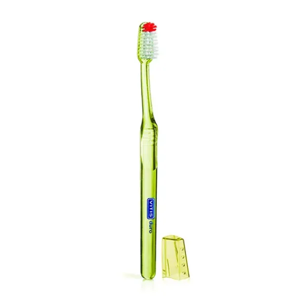 El cuello del cepillo VITIS® duro es maleable, de manera que se puede flexionar hasta adquirir la posición que mejor se adapta a la boca. El mango es anatómico y con estrías antideslizamiento para facilitar el uso y comodidad durante el cepillado.