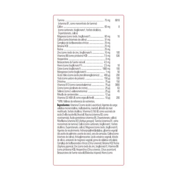 Este complejo multivitamínico líder del mercado utiliza formas de alta calidad, como recubrimientos naturales de base acuosa que mejoran la absorción de los nutrientes contenidos y formas minerales como bisglicinatos que mejoran su absorción y biodisponibilidad.