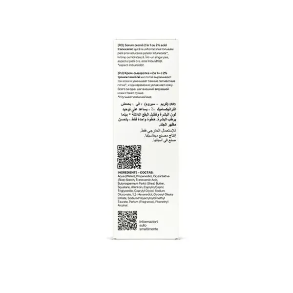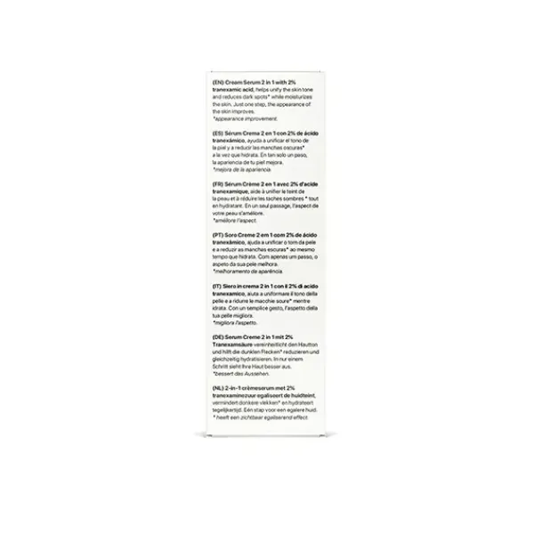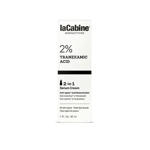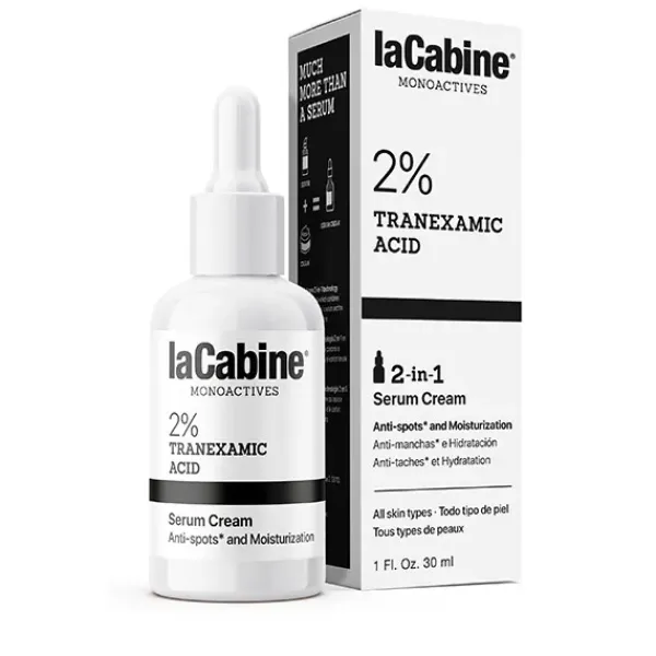 Sérum Crema 2 en 1 laCabine con 2% de ácido tranexámico, ayuda a unificar el tono de la piel y a reducir las manchas oscuras* a la vez que hidrata. En tan solo un paso, la apariencia de tu piel mejora.
