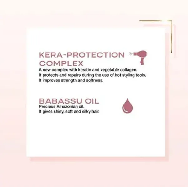 Con Kera-protection complex y Aceite de Babasú para un cabello protegido, liso y peinable.