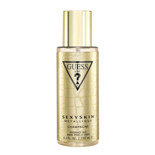 Sexy Skin Metalique Champagne es una colección de brumas unisex inspiradas en los cocteles más famosos. Su frasco está inspirado en los icónicos bolsos de la firma Guess, el pattern de cocodrilo le aporta ese glamour y lujo que caracteriza a la marca.