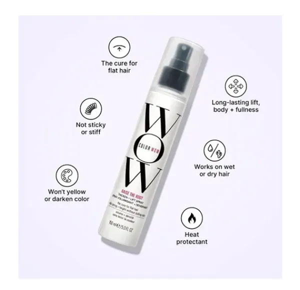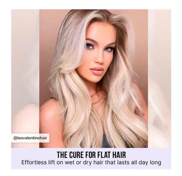 El Spray Raise the Root está formulado con polímeros translúcidos, flexibles y únicos que actúan como un resorte en la raíz del cabello, creando elevación instantánea y volumen duradero.
