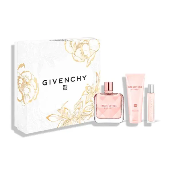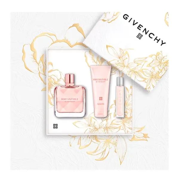 Una oda a la época de Hubert de Givenchy en la École Nationale Supérieure des Beaux-Arts de París, este exclusivo set de regalo Givenchy para el Día de la Madre ha sido diseñado por un joven artista formado por la prestigiosa institución. Este set de regalo que incluye un Eau de Parfum Givenchy Irresistible, una loción corporal y un spray de viaje.