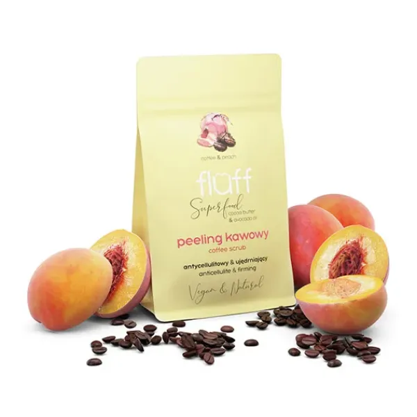Fórmula de peeling seco reafirmante y anticelulítico con ingredientes 100% de origen natural: café robusta natural con azúcar moreno, semilla de fresa y vitamina E, aceite de almendras dulces y aceite de aguacate.
