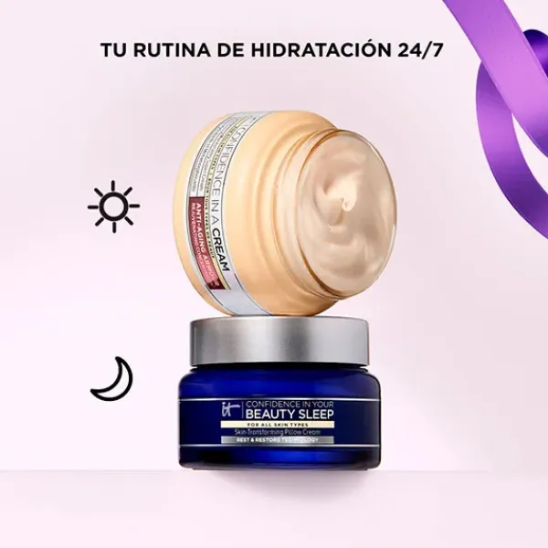 Confidence In Your Beauty Sleep: una crema antiedad hidratante que trabaja de noche. Ayuda a regenerar visiblemente la piel, reduciendo la apariencia de líneas de expresión y revelando un rostro con aspecto más joven y luminoso por la mañana.