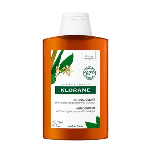 El champú reequilibrante anticaspa con galangal de Klorane aprovecha todo el poder de esta raíz medicinal natural con propiedades anticaspa y calmantes de la familia de la cúrcuma. Su fórmula suave y natural lava el cabello, elimina todo tipo de caspa** y reequilibra el cuero cabelludo**.